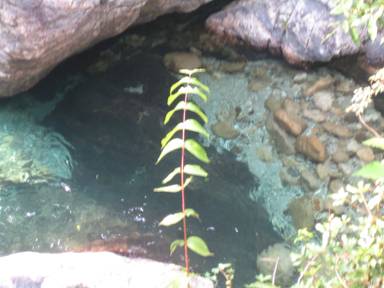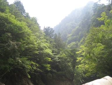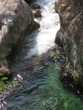 がけを下り、前鬼川へジャンピング!
